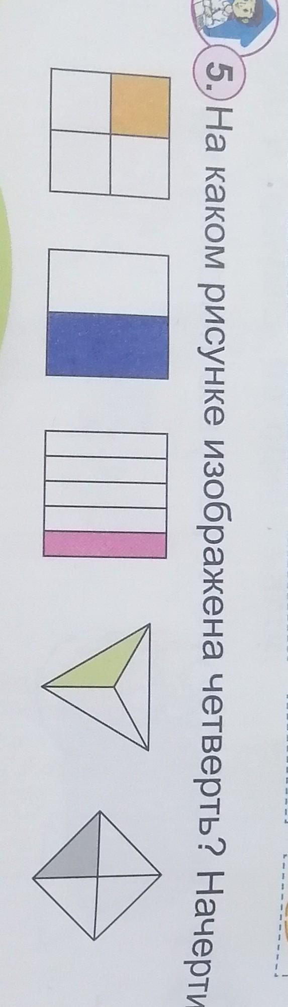 Четверть это 1/4, а это значит что из четырёх частей закрашена только одна часть.