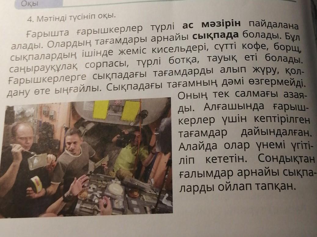 1) Ғарышта адамдар не арқылы тамақтанады?