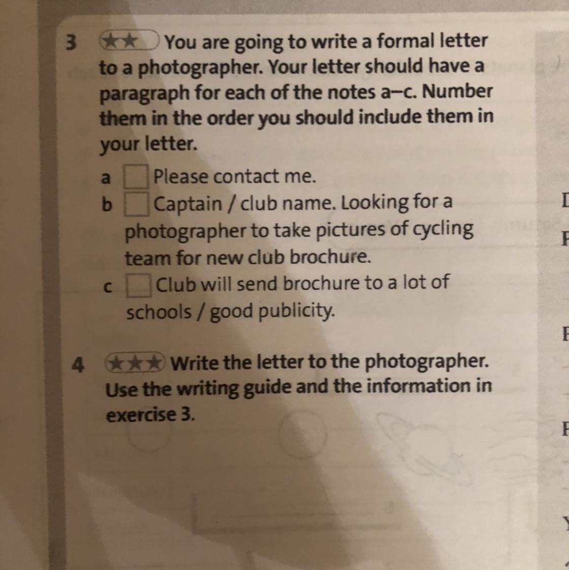 4 ***Write the letter to the photographer.