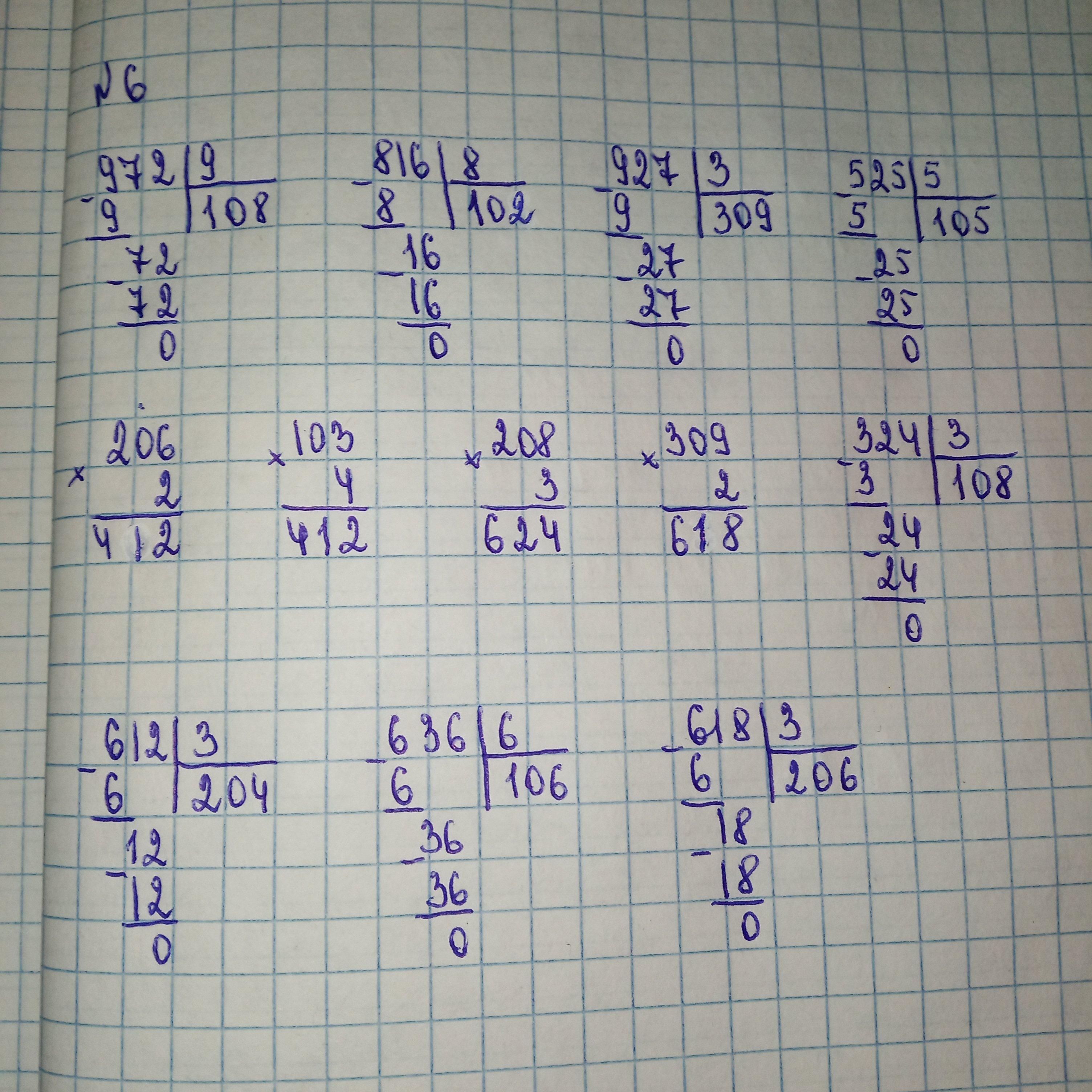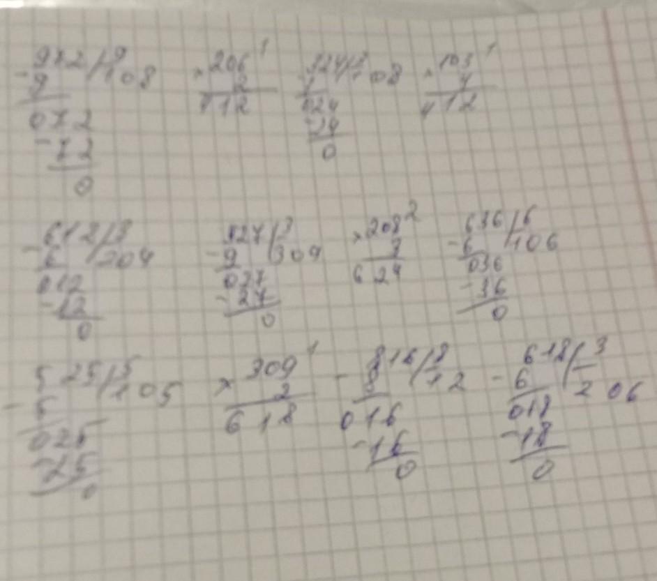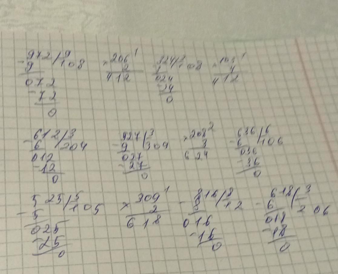 324 : 3 = 108 612 : 3 = 204 636 : 6 = 106 618 : 3 = 206