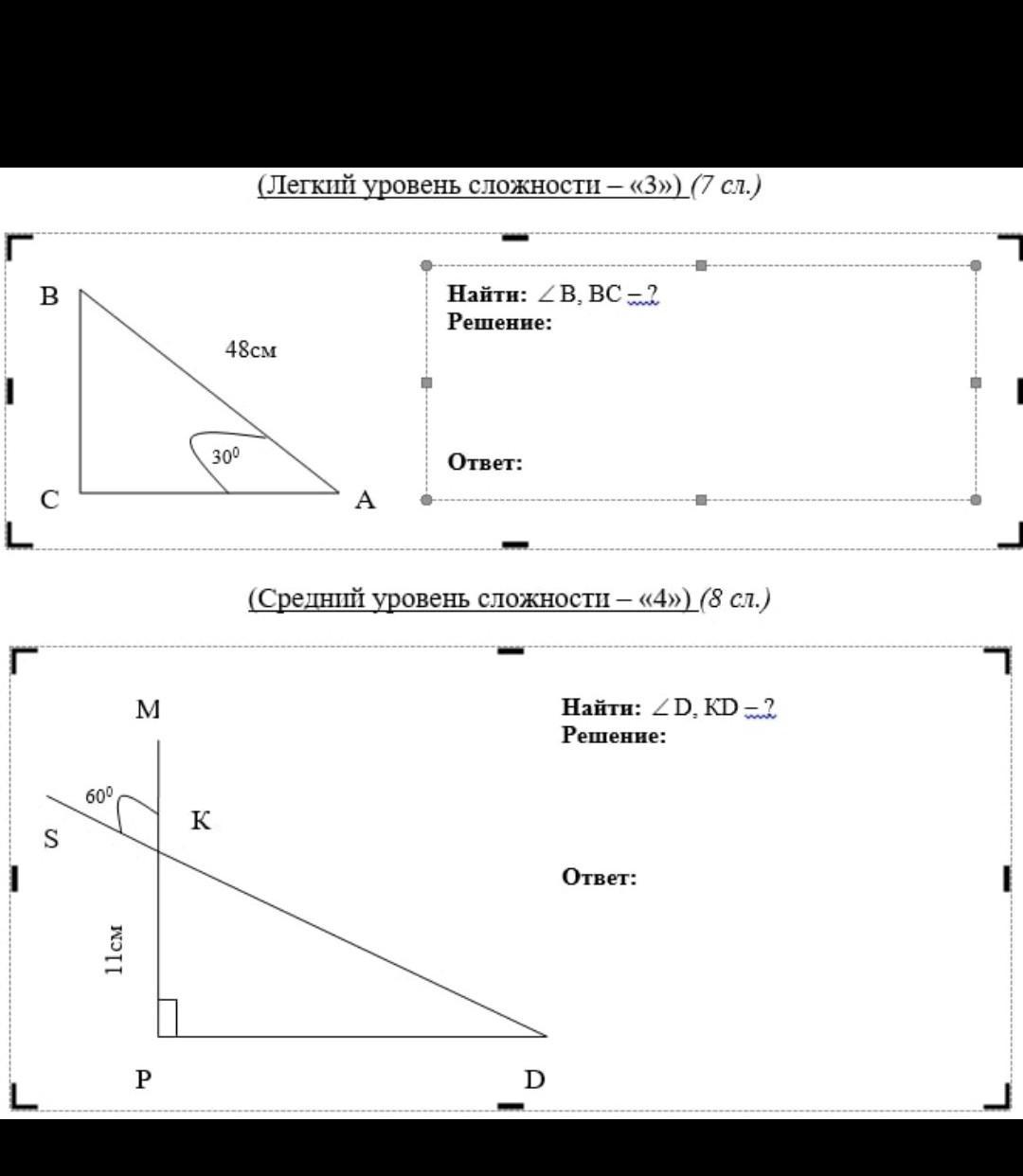 ∠ В = 90°-∠А = 90°-30° = 60°