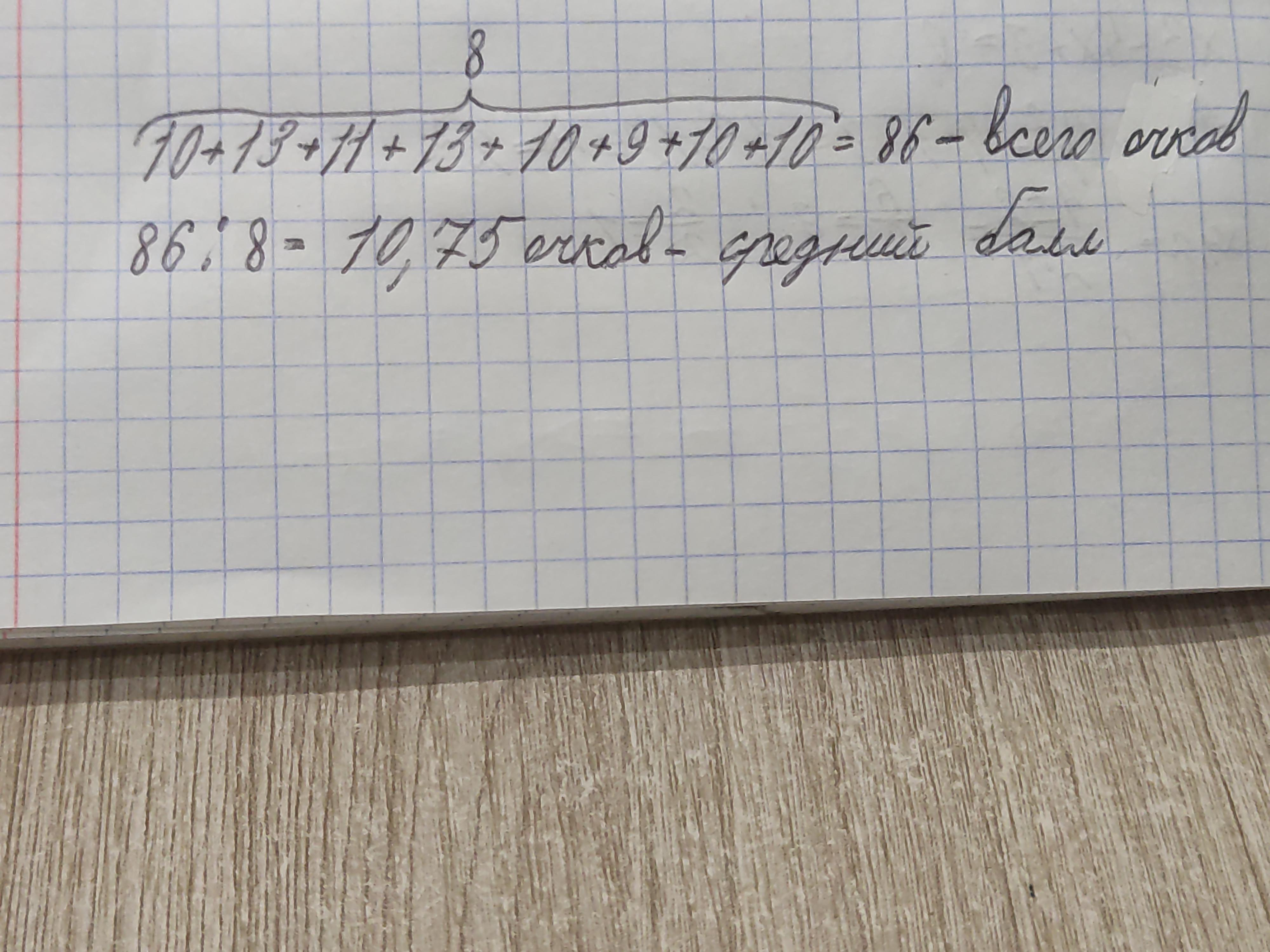 помогите на шахмотном турнире учиники 6 класса получили очки 10,13 11,13,10,9,10,10 найдите средние арифметическое срочно