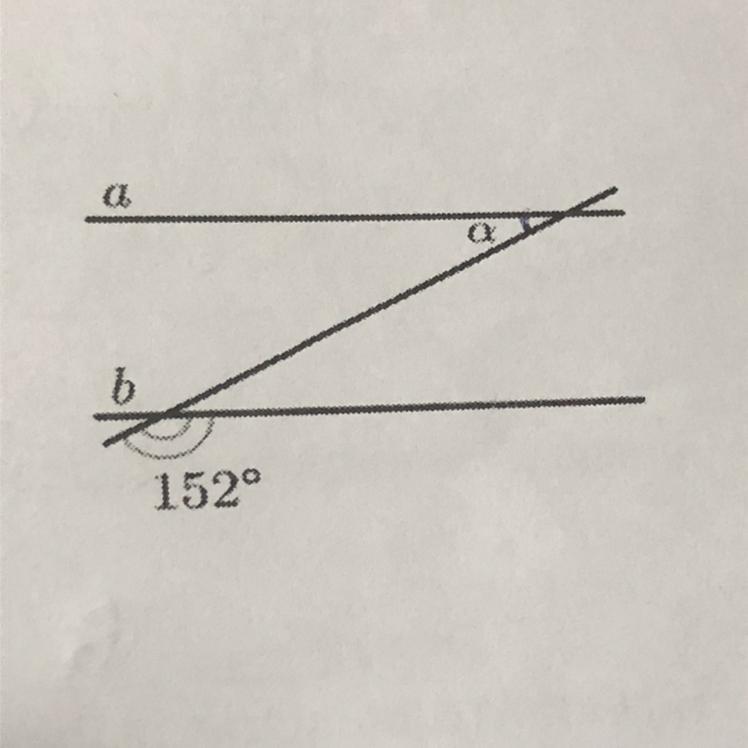 152° зовнішній кут, а кут α= внутрішньому куту b, який дорівнює 180°-152°=28°