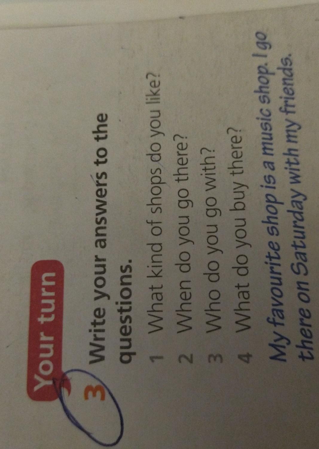 My favourite shop is a sport shop. I go there on Friday with my parents.