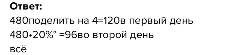 Белла запланировала прочитать книгу. В первый день она прочла 1/4 всей книги, а во второй день 20% оставшейся части. Сколько страниц книги осталось прочитать Белле после двух этих дней, если всего в книге 480 страниц?