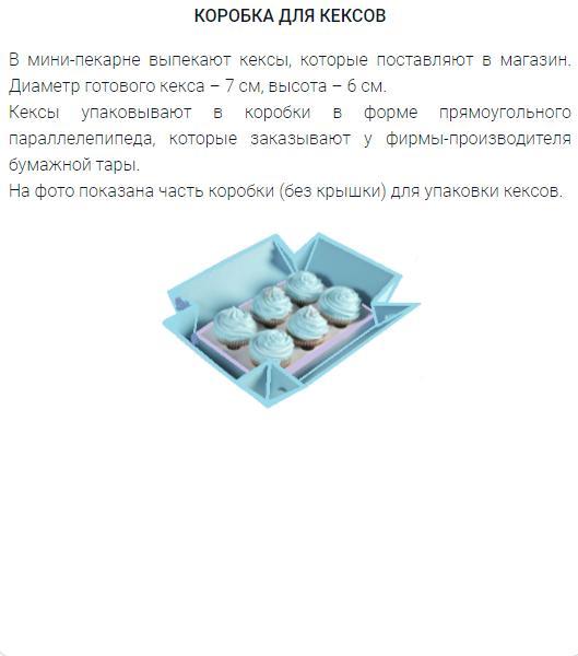 Прочитайте текст «Коробка для кексов», расположенный справа. Запишите свои ответы на вопрос в виде чисел.