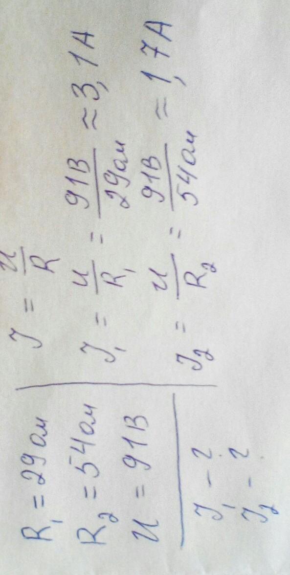 За допомогою реостата можна змінювати опір від 29Ом до 54Ом. В яких межах буде змінюватись сила струму, якщо напруга дорівнює 91В.