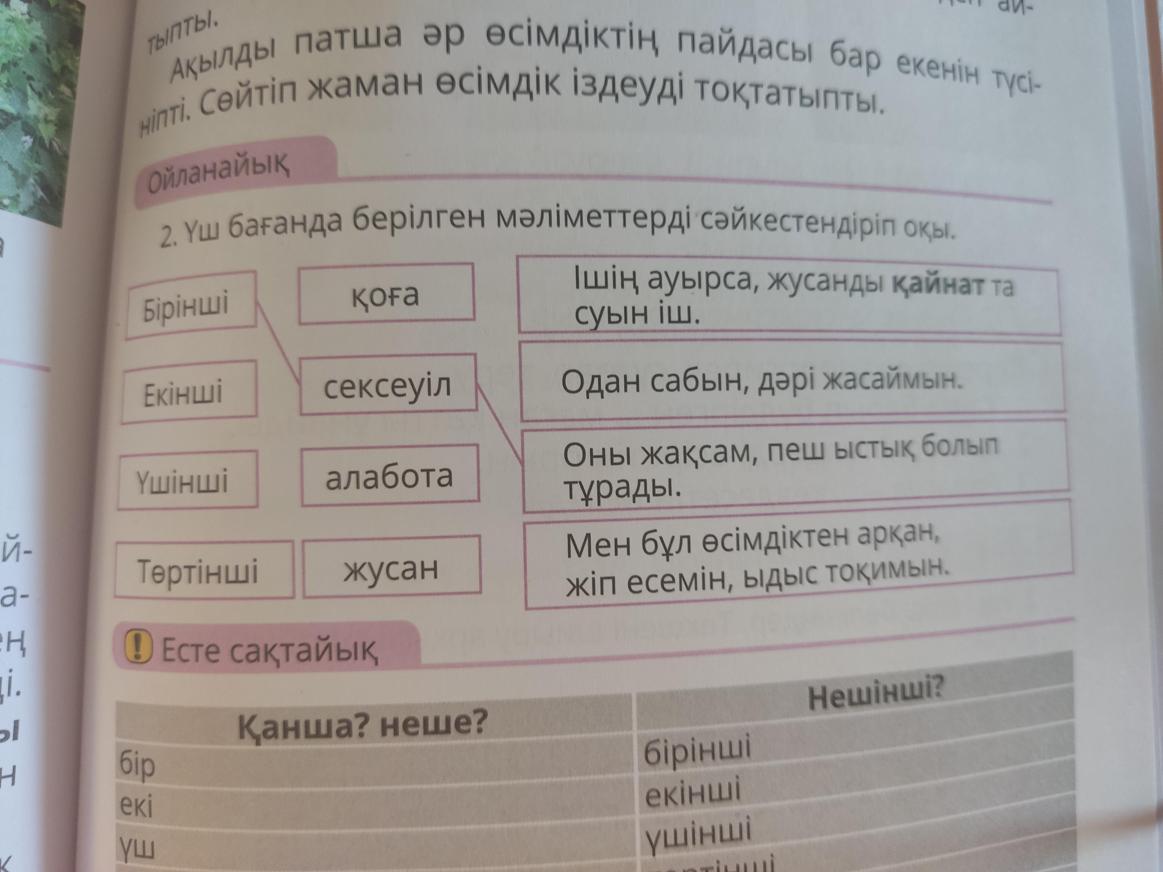 Төртінші қоға мен бұл өсімдіктен арқан, жіп есемін, ыдыс тоқыймын