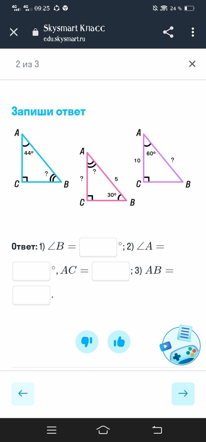в первом сумма треугольников должна быть 180 градусов а второй и третий если катет лежит против угла в 30 градусов то он равен половине гипотенузы