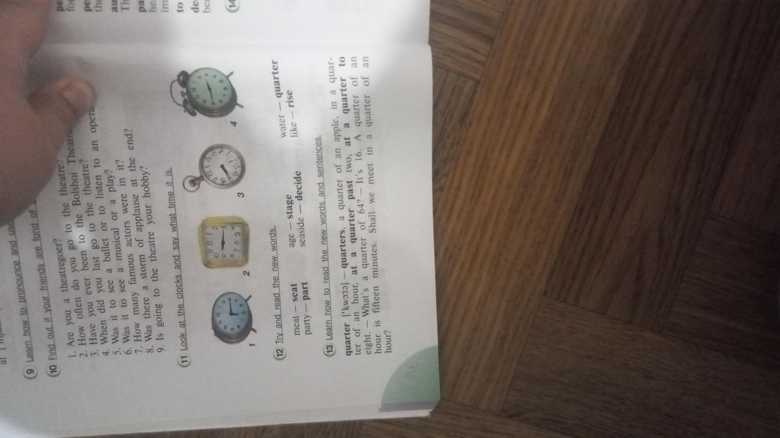 quater - четверть, quatrers - четверти, четверть яблока, через четверть часа, в четверть третьего, в без пятнадцати минут восемь. Сколько составляет четверть от 64? - Это 16. Четверть часа - это 15 минут. Мы встретимся через четверть часа?