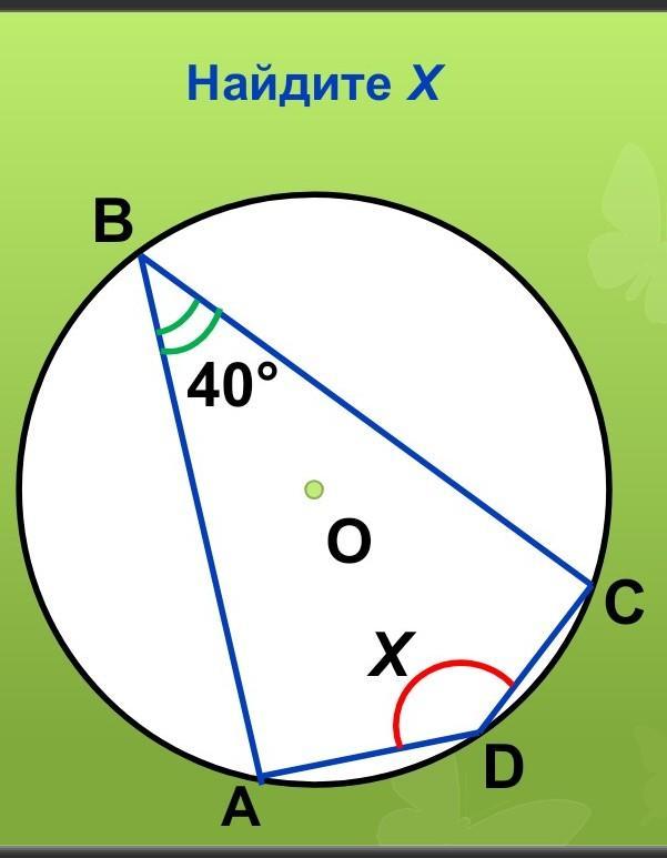 Отсюда следует, что: Угол Д (т. е. х) =70°+70°=140°