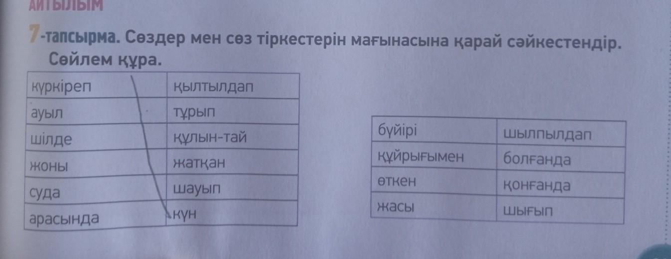 1) ауыл кулын тай 2) шлiлде турып 3)жоны жаткан 4) суда кылтылдап