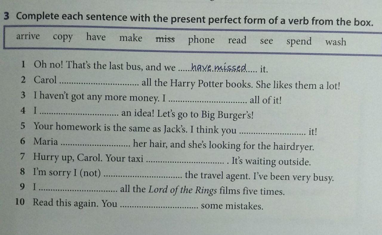 6. Maria has washed her hair ..