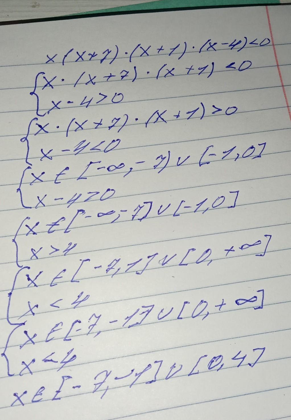 x(x+7)(x+1)(x-4) <0 Помогите решить.