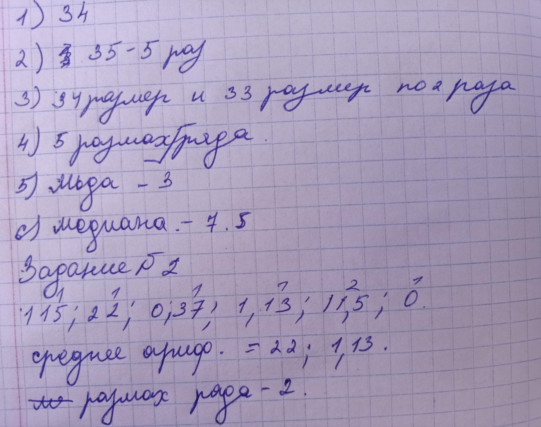 1) среднее арифметическое равно частному от деления суммы всех членов ряда 513 на их количество 15: