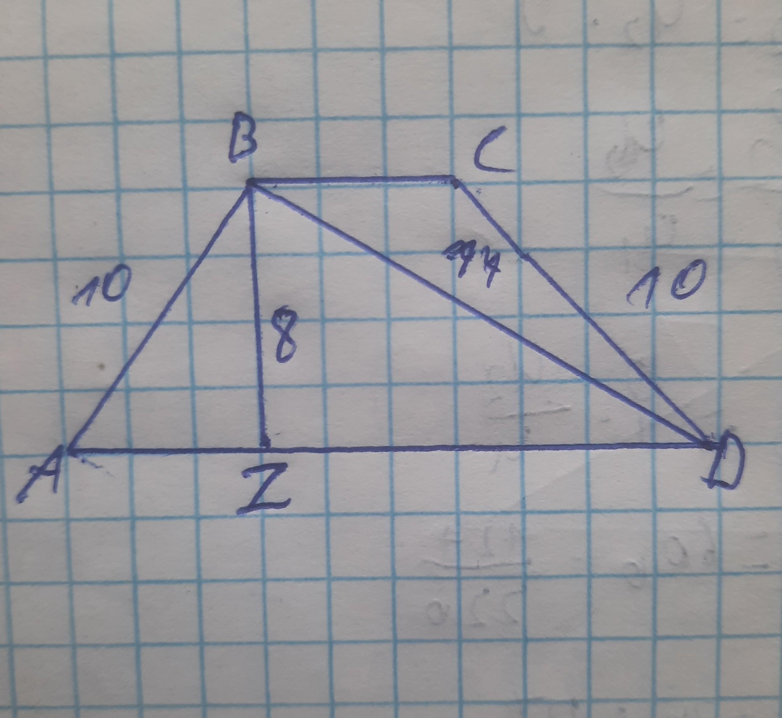 візьмемо трикутник АВZ за теоремою піфагора ZB²+AZ²=AB² підставимо цифри