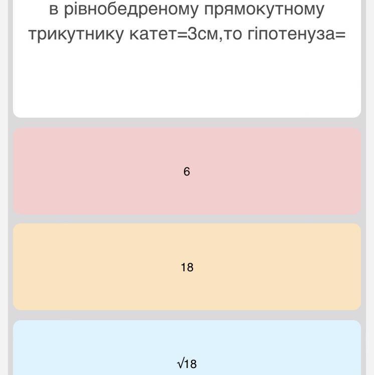 Т.к. треугольник прямоугольный и равнобедренный, то его боковые стороны - катеты равны по 3 см, и по теореме Пифагора гипотенуза