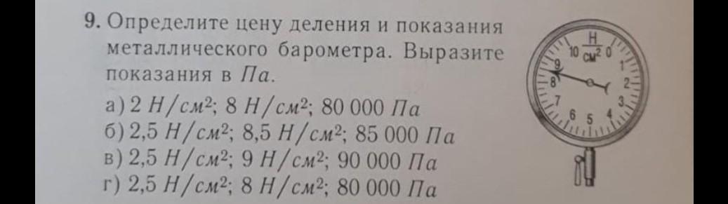 определите цену давления и показания металлического барометра.Выразите показания в Па(очень надо,прошу быстрее)