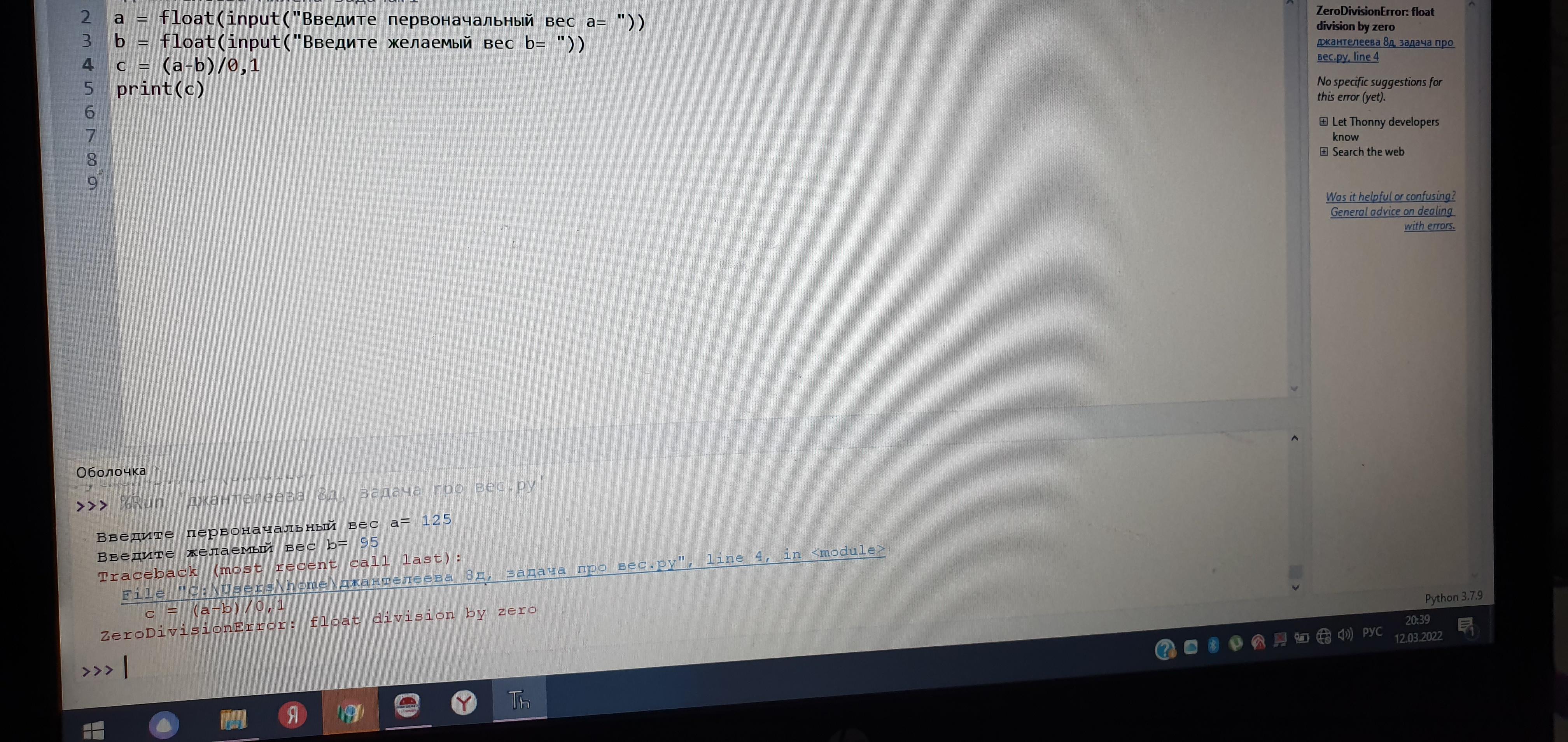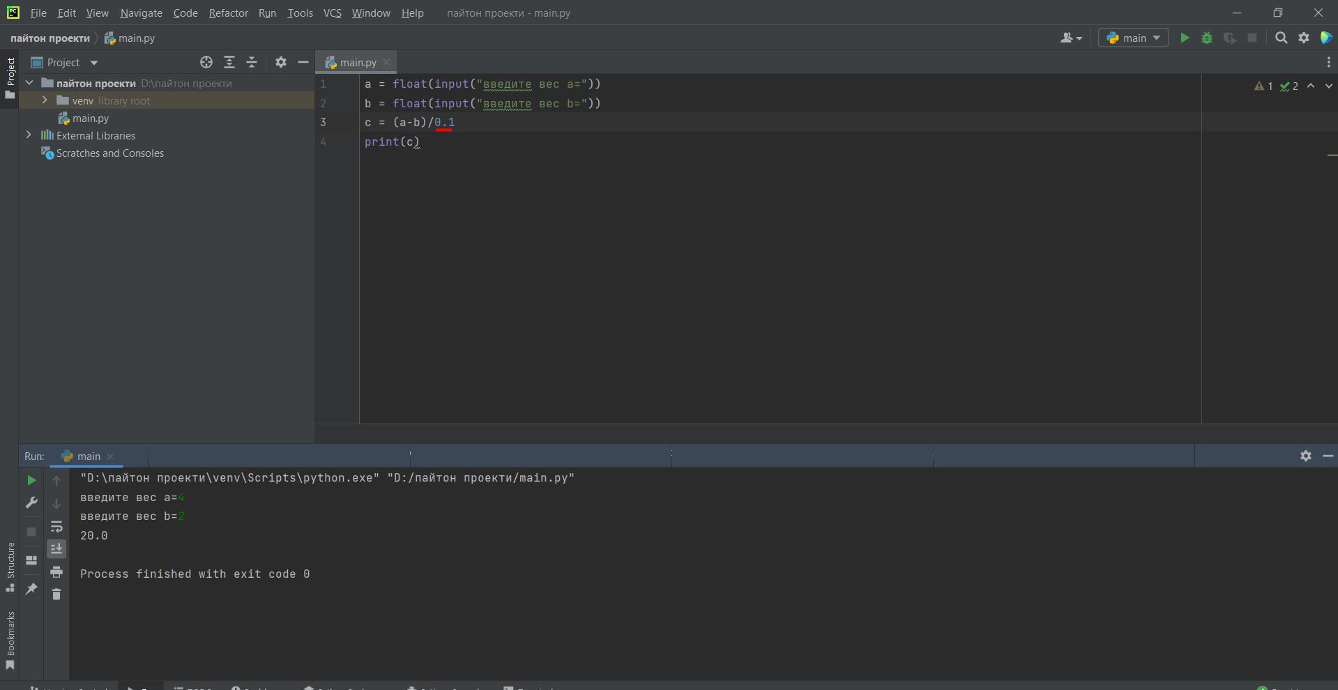 Помогите пожалуйста, мне в питоне ошибку выдаёт, что не получается делить на 0,1 так как содержится 0. Как сделать чтобы выражение поделить на 0,1 (десятичную дробь) и не выдавало ошибку? Может я не правильно знак деления ввожу? А как ввести десятичные число 0,1?