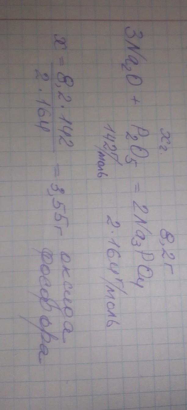 Обчисліть масу фосфор (V) оксиду, що необхідна для одержання 8,2 г Na3PO4 внаслідок реакції фосфор (V) оксиду з натрій оксидом