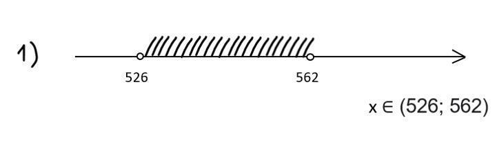 Значит, х принадлежит числовому промежутку (526; 562).