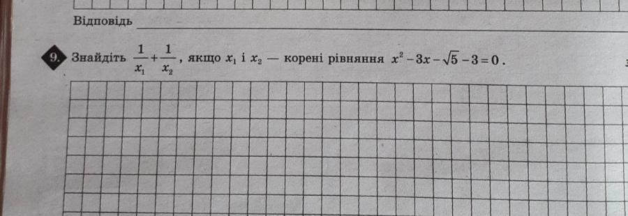 Знайдіть 1/x1+1/x2, якщо x1 і x2 корені рівняння x^2-3x-√5-3=0