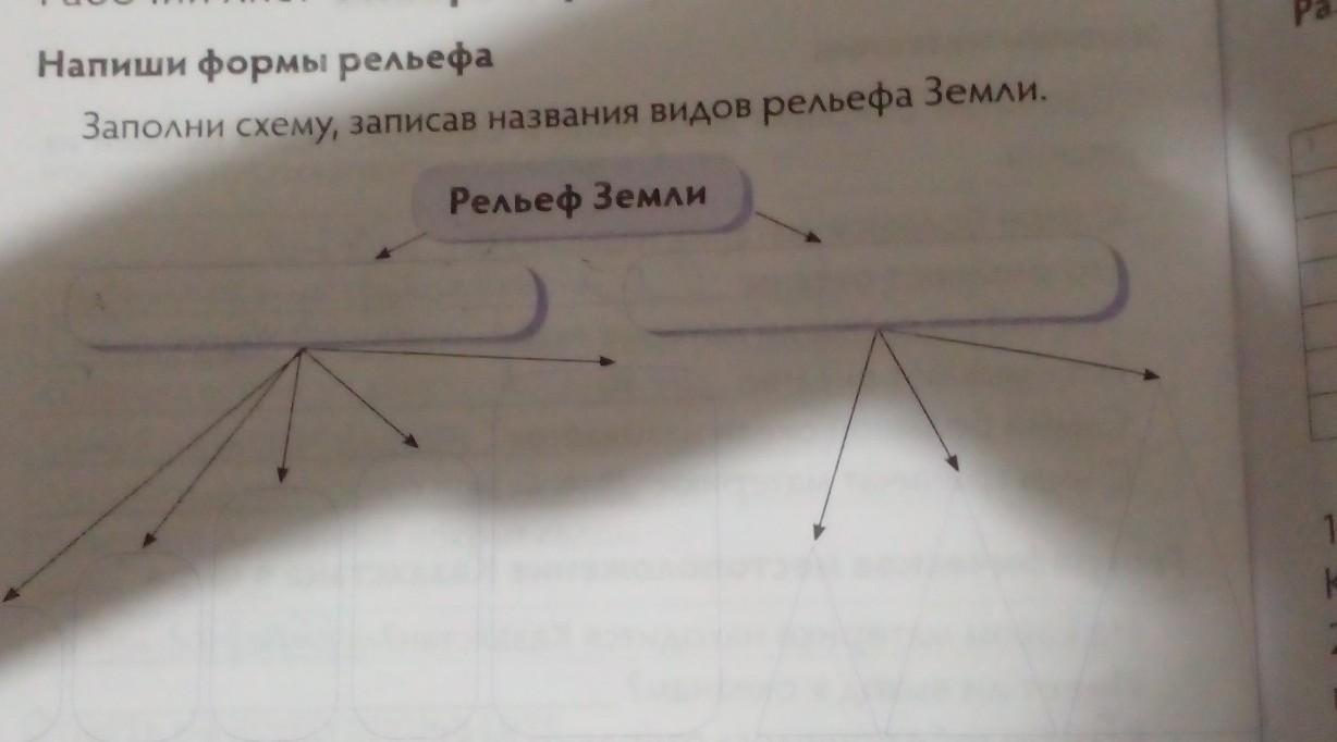 Напиши формы рельефа Заполни схему, записав названия видов рельефа Земли. Рельеф Земли