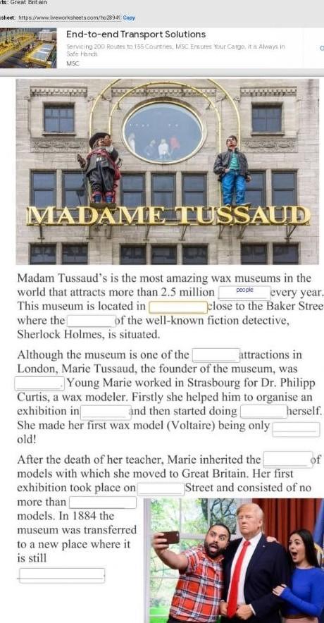 Although the museum is one of the tourist attractions in London, Marie Tussaud, the founder of the museum, was French. Young Marie worked in Strasbourg for Dr. Philipp Curtis, a wax modeller. Firstly she helped him to organise an exhibition in Paris and then started doing models herself. She made her first wax model (Voltaire) being only 17 years old!