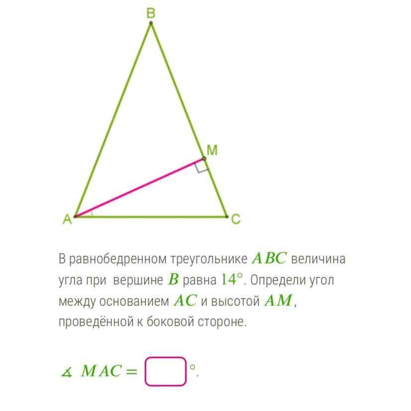 угол BAM=180°-14°-90°=76° (90°это 180°-AMC)