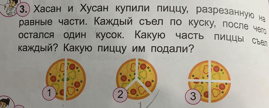 им подали пиццу 2. остался нижний кусок, остальные два куска они съели