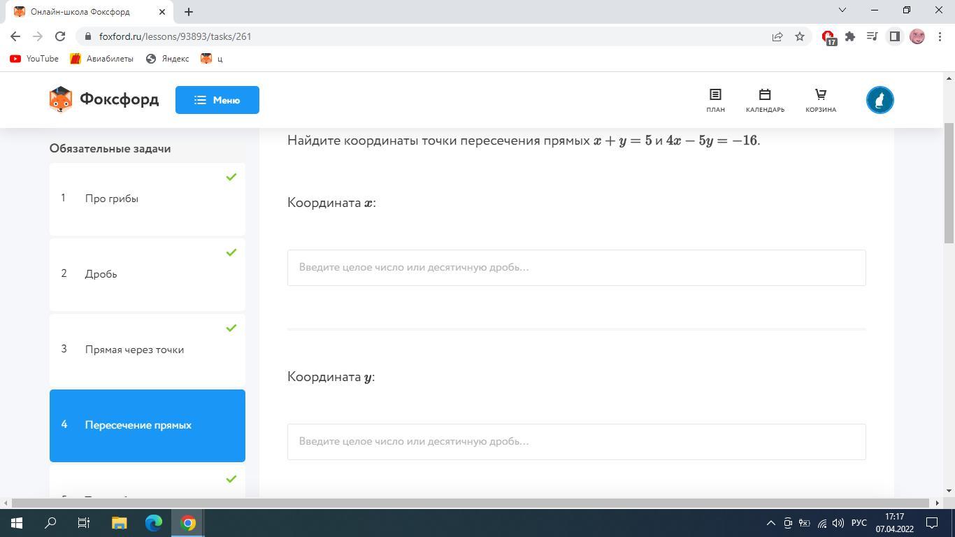 Получаем, координата Х=1; координата У=4