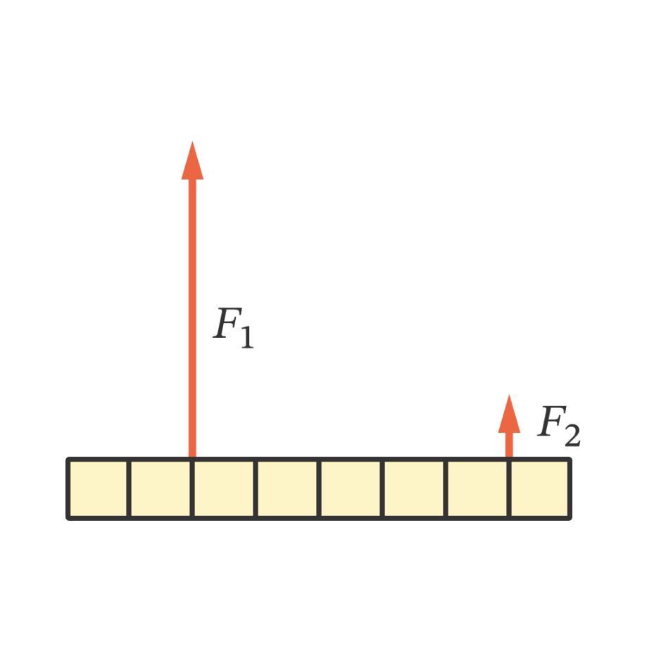 К линейке, лежащей на гладком горизонтальном столе, прикладывают перпендикулярно линейке две сонаправленные горизонтальные силы 1=5H