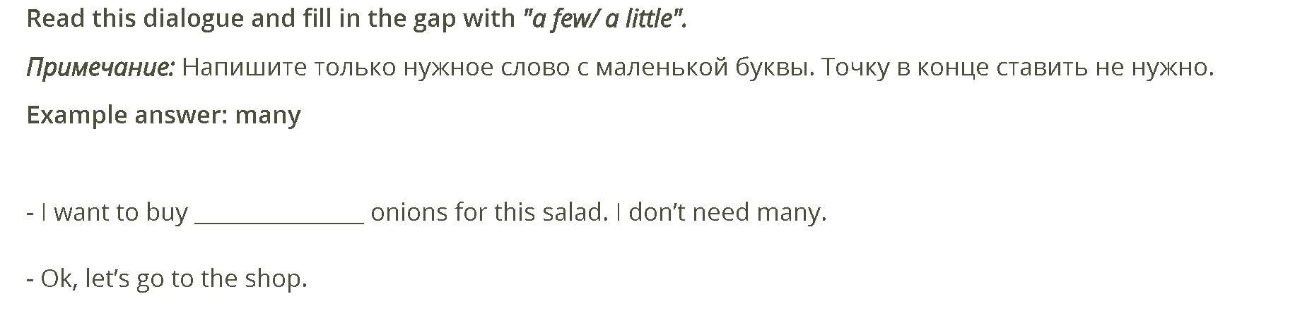 1 onions - исчисляемое сущ. во множ. числе, поэтому пишем a few (несколько)