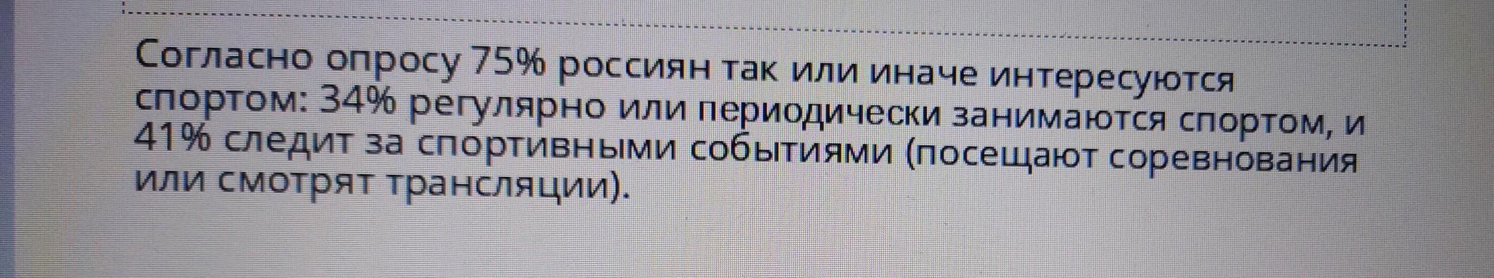 В тектсе говорится о том,как каждый россиян занимается спортом,а именно каким..Тоесть,кто как предпочитает отдавать время на спорт
