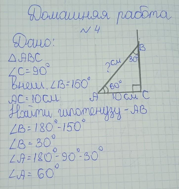 20 см, т.к. катет прям. ∆-ка, лежащий против угла в 3о°, равен половине гипотенуны. (можно лучший пожалуйста)