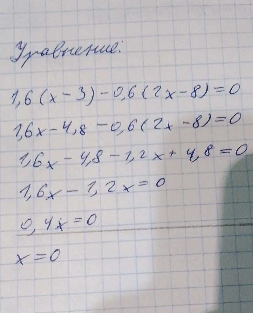 1,6(x-3)-0,6(2x-8)=0