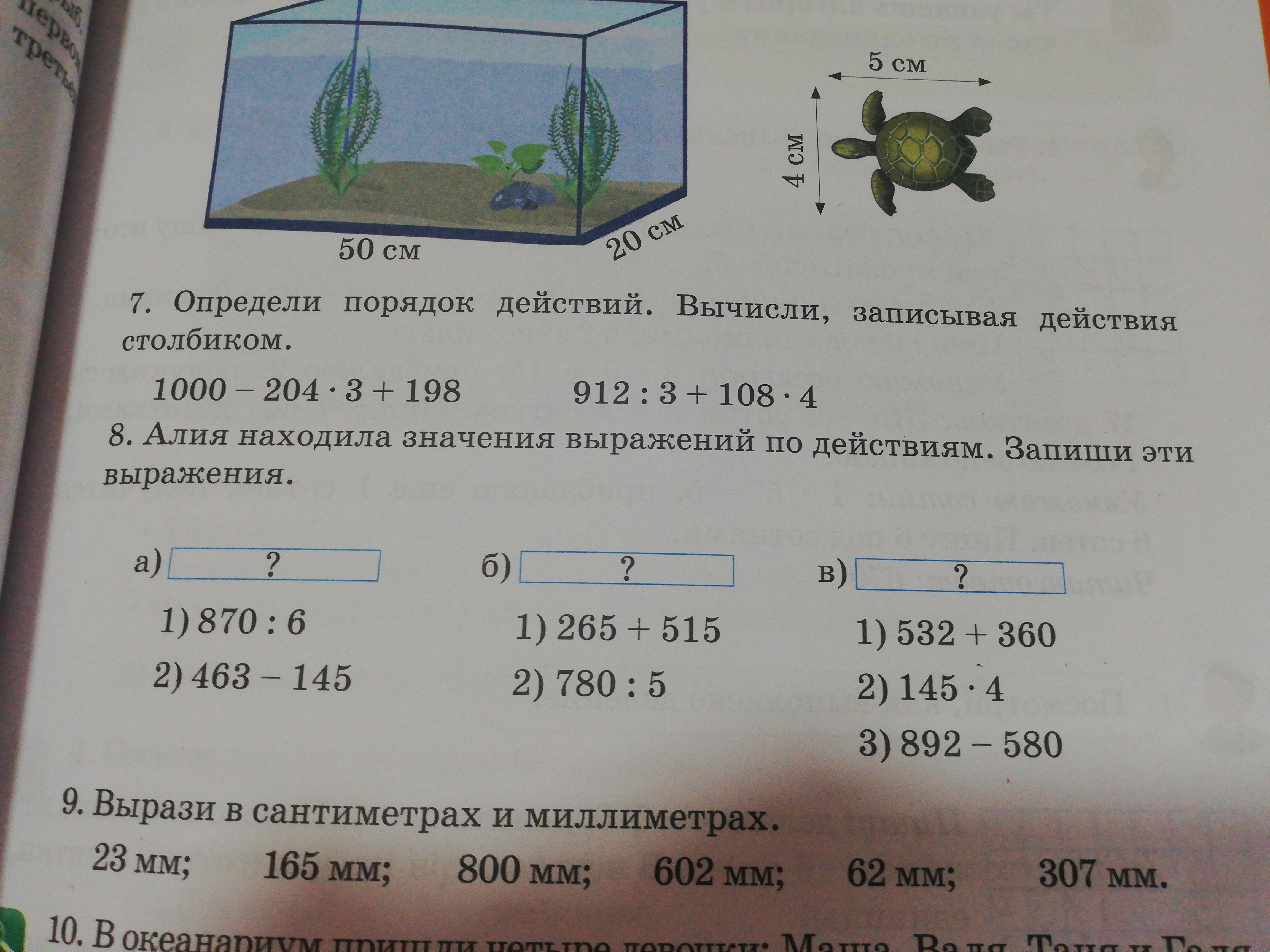 Алия находила значения выражений по действиям. Запиши эти выражения
