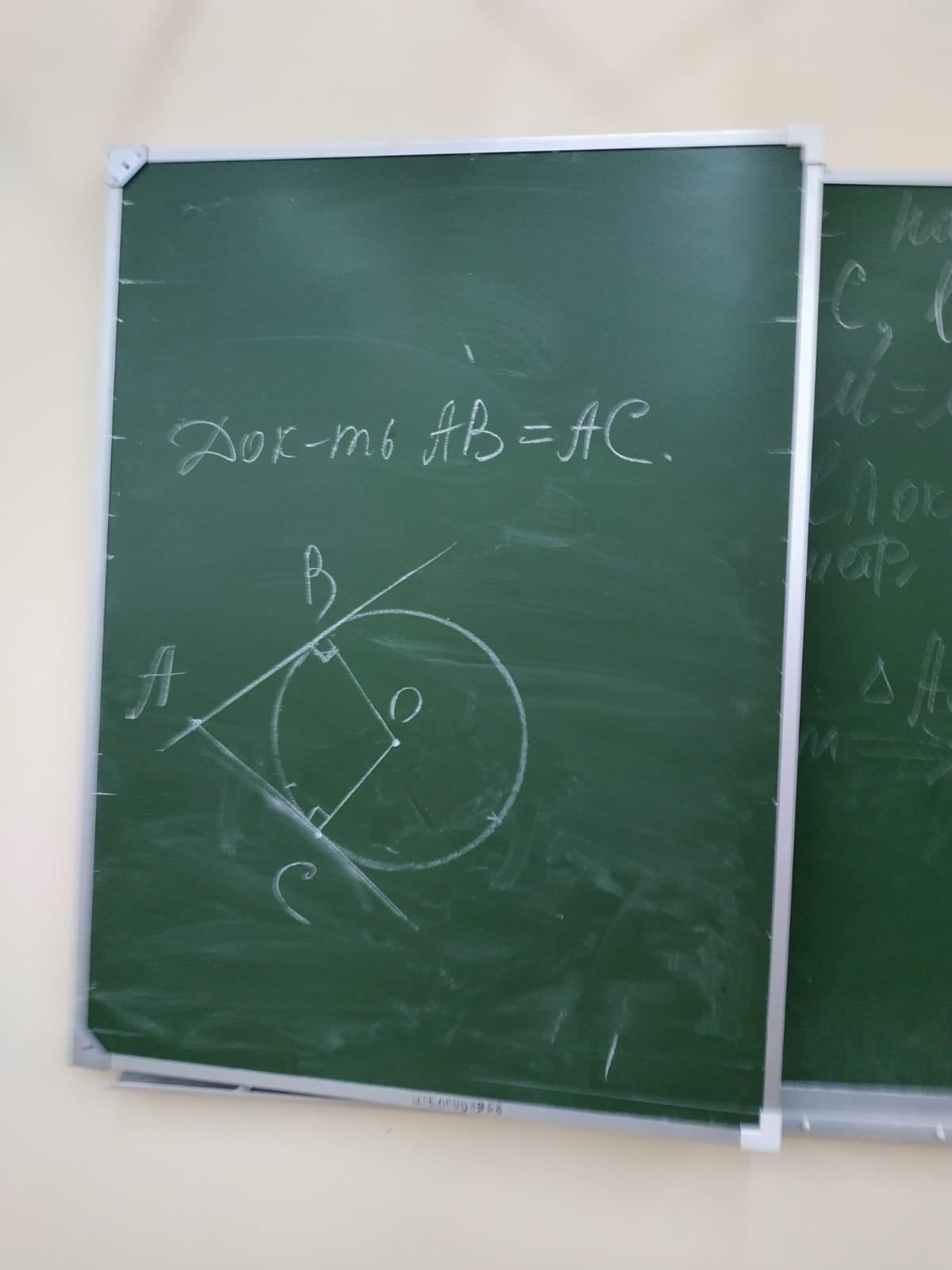 если соединить А и О, то треугольники АОВ и АОС равн по катету (ВО перпендикулярен АВ и ОС ⊥АС по свойству радиуса, проведенного в точку касания, и ОВ=ОС- как радиусы одной окружности, а ОА - гипотенуза, общая, значит, из равенства треугольников следует равенство АВ и АС, доказано.