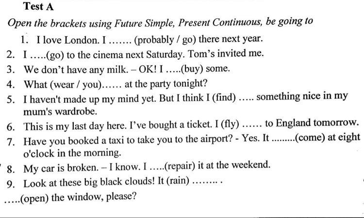 9 Look at these black clouds! it is going to rain. Will you open the windows, please?