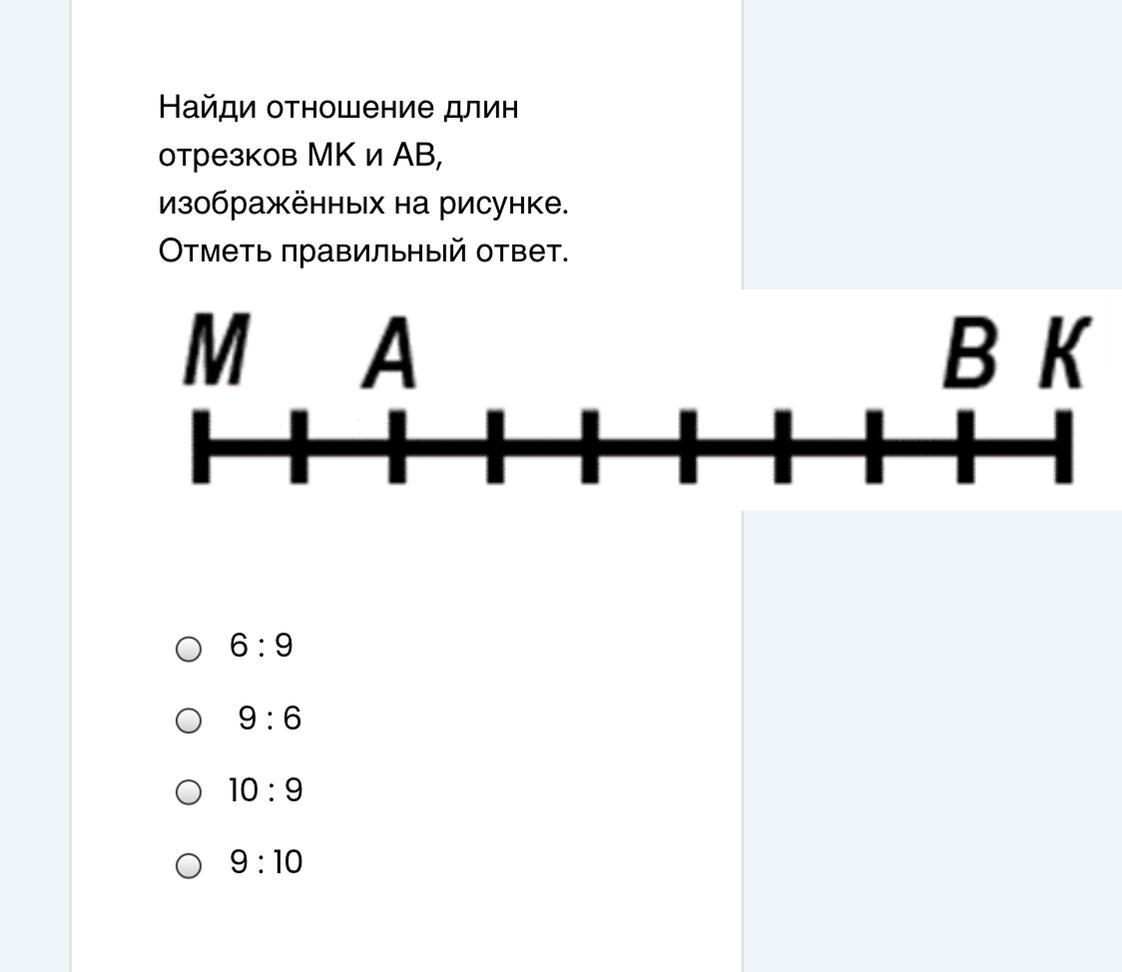 Найди отношение длин отрезков МК и АВ, изображённых на рисунке. Отметь правильный ответ.