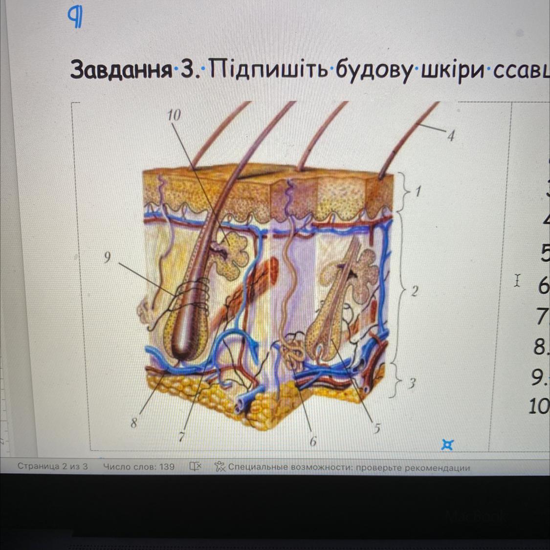 Підпишіть будову шкірі ссавців. Яка роль шкіри у житті ссавців. Будь,ласка по номерам