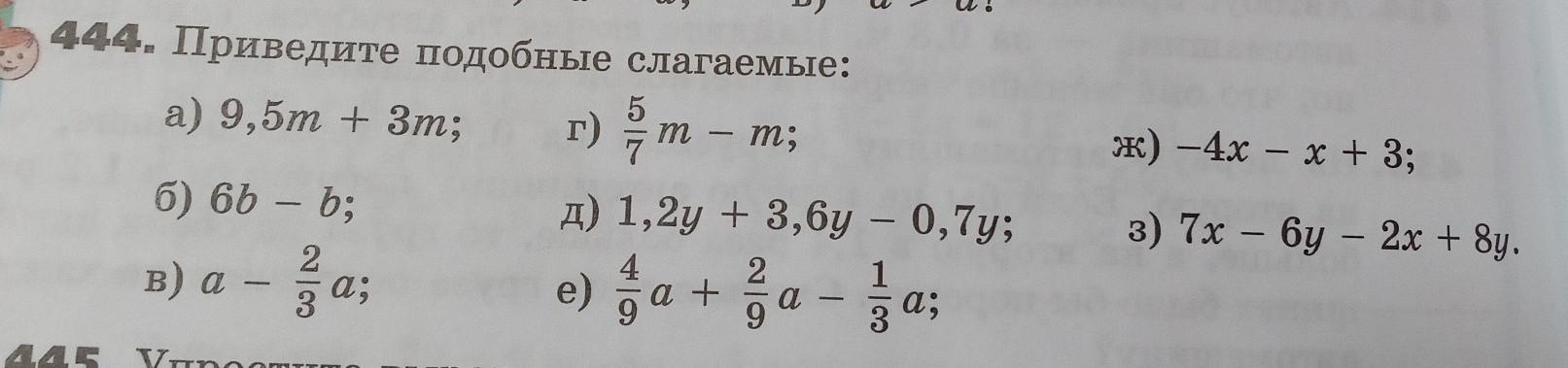 з) 7х - 6у - 2х + 8у = (7 - 2)х + (8 - 6)у = 5х + 2у.