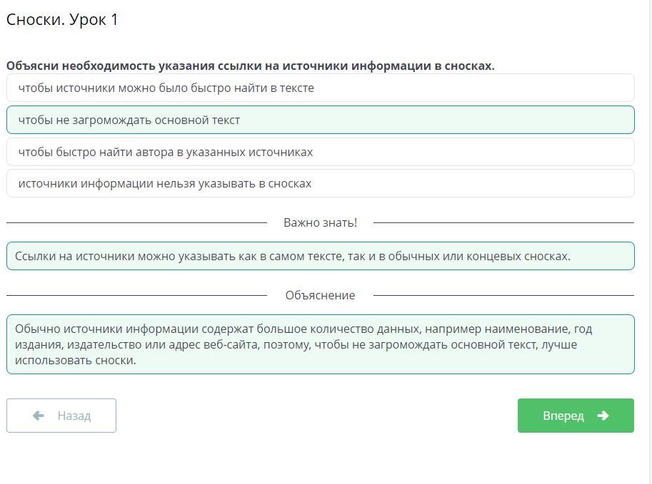Объясни необходимость указания ссылки на источники информации в сносках.