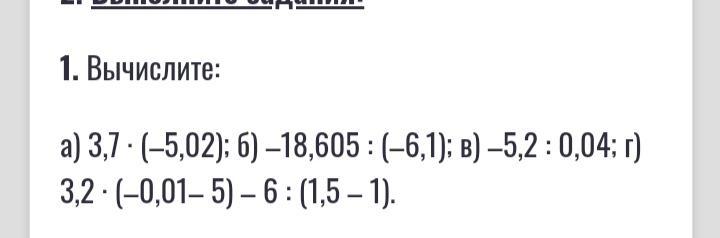 г) 3.2*(-0.01-5)-6/(1.5-1)=3.2*(-5.01)-6/0.5=-16.032-3=-19.032
