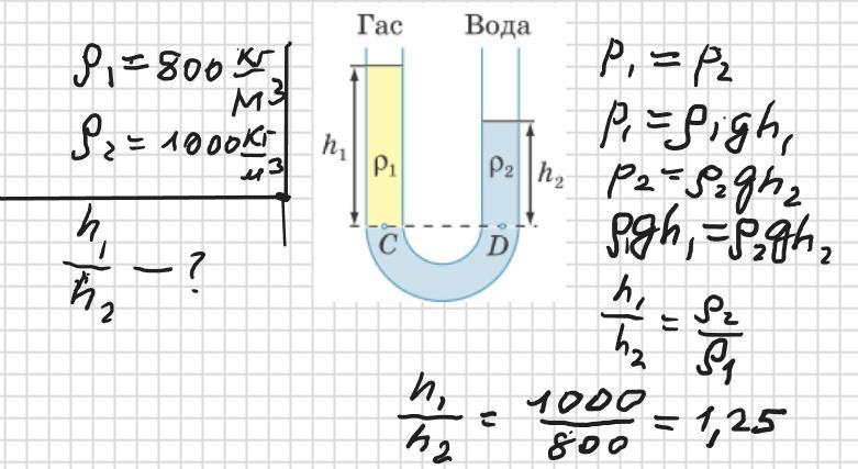 В одному коліні сполучених посудин знаходиться вода,а в іншому - гас.Рівень якої рідини вищий , у скільки разів. допоможіть пж. даю 30 балів