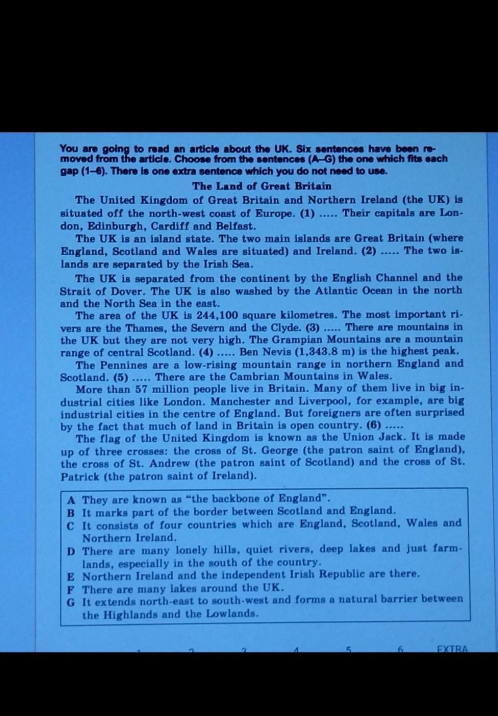 1)The United Kingdom of Great Britain and Northern Ireland (UK) is an island country that sits north-west of mainland Europe.