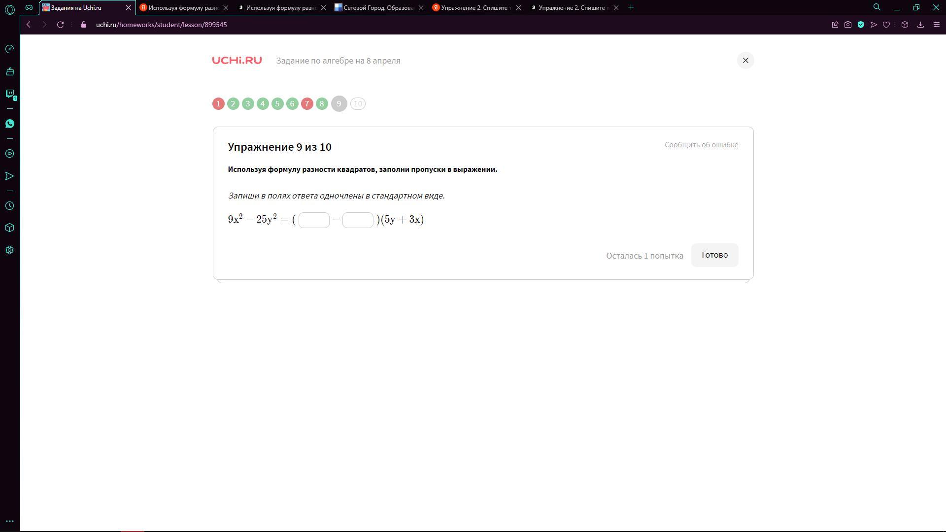 Запиши в полях ответа одночлены в стандартном виде.