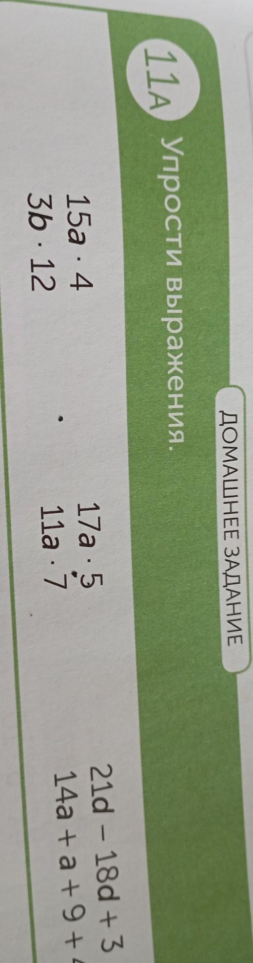 () 11А) Упрости выражения. 15а - 4 3b : 12 17а - 5 11а - 7 21d - 18d + 3 14а +а+9+4