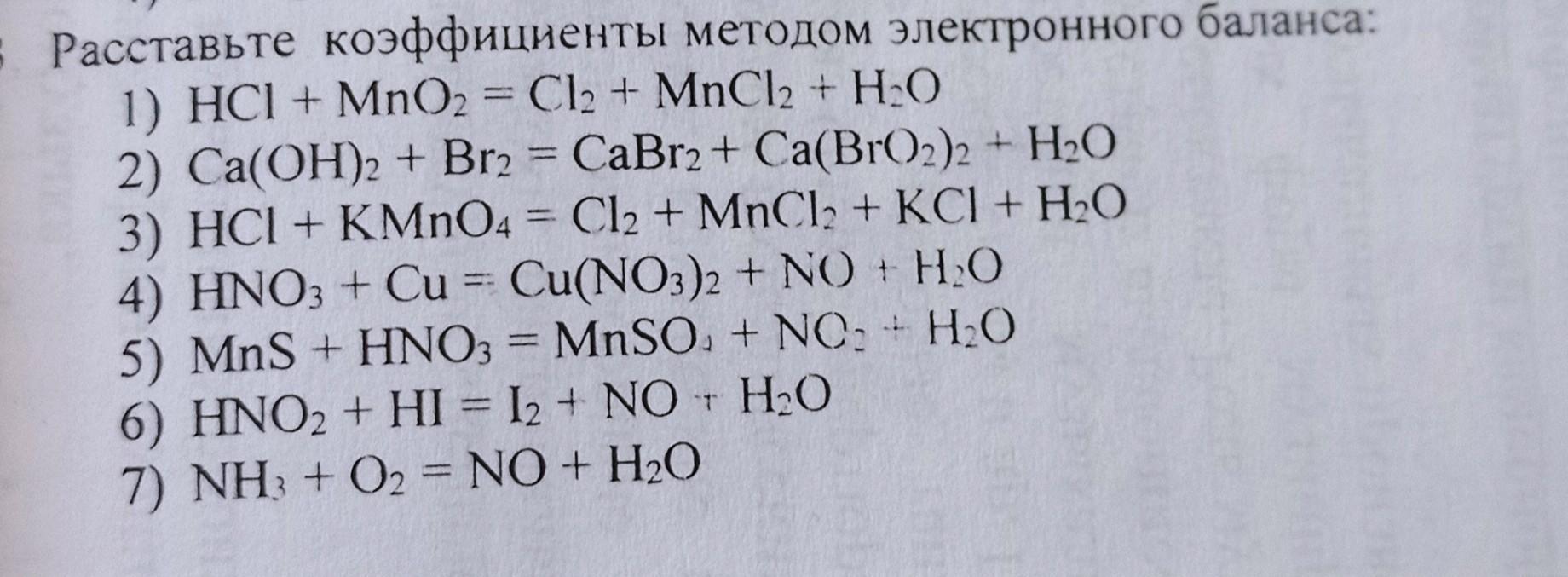 1)ответ:4HCl + MnO2 = Cl2 + MnCl2 +2 H2O