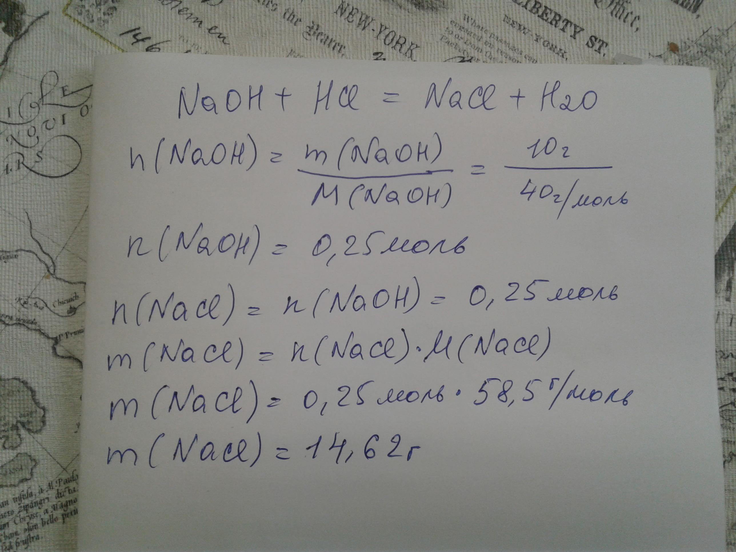 Какая масса хлорида натрия получается при взаимодействии 10 г едкого натра с соляной кислотой? (Ответ: получается 14,62 г хлорида натрия.)